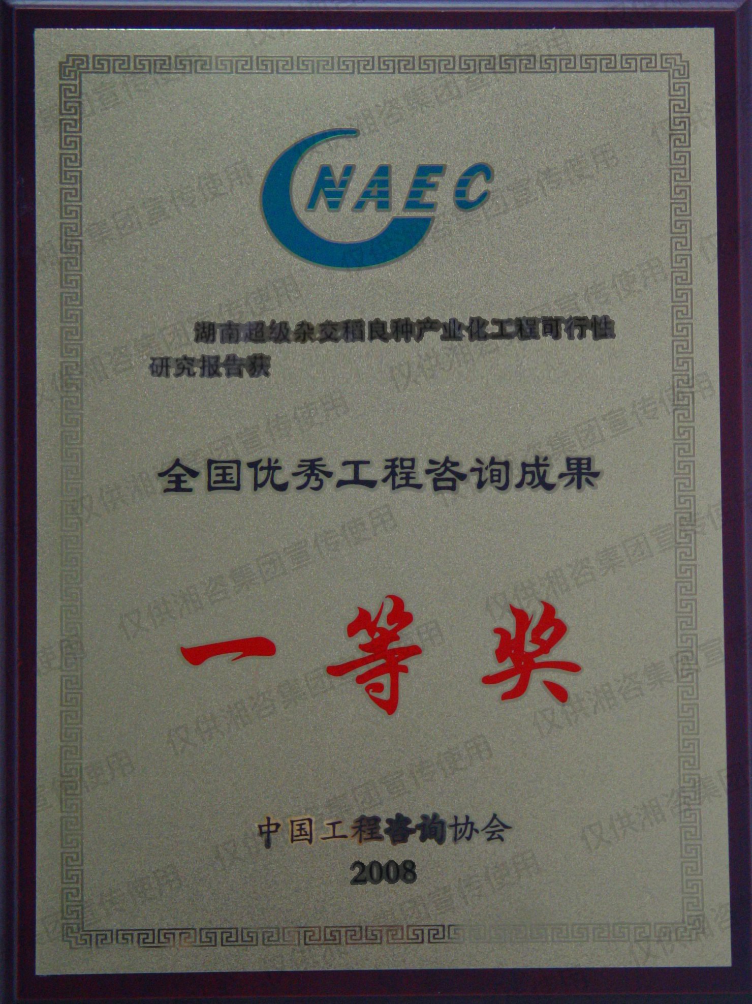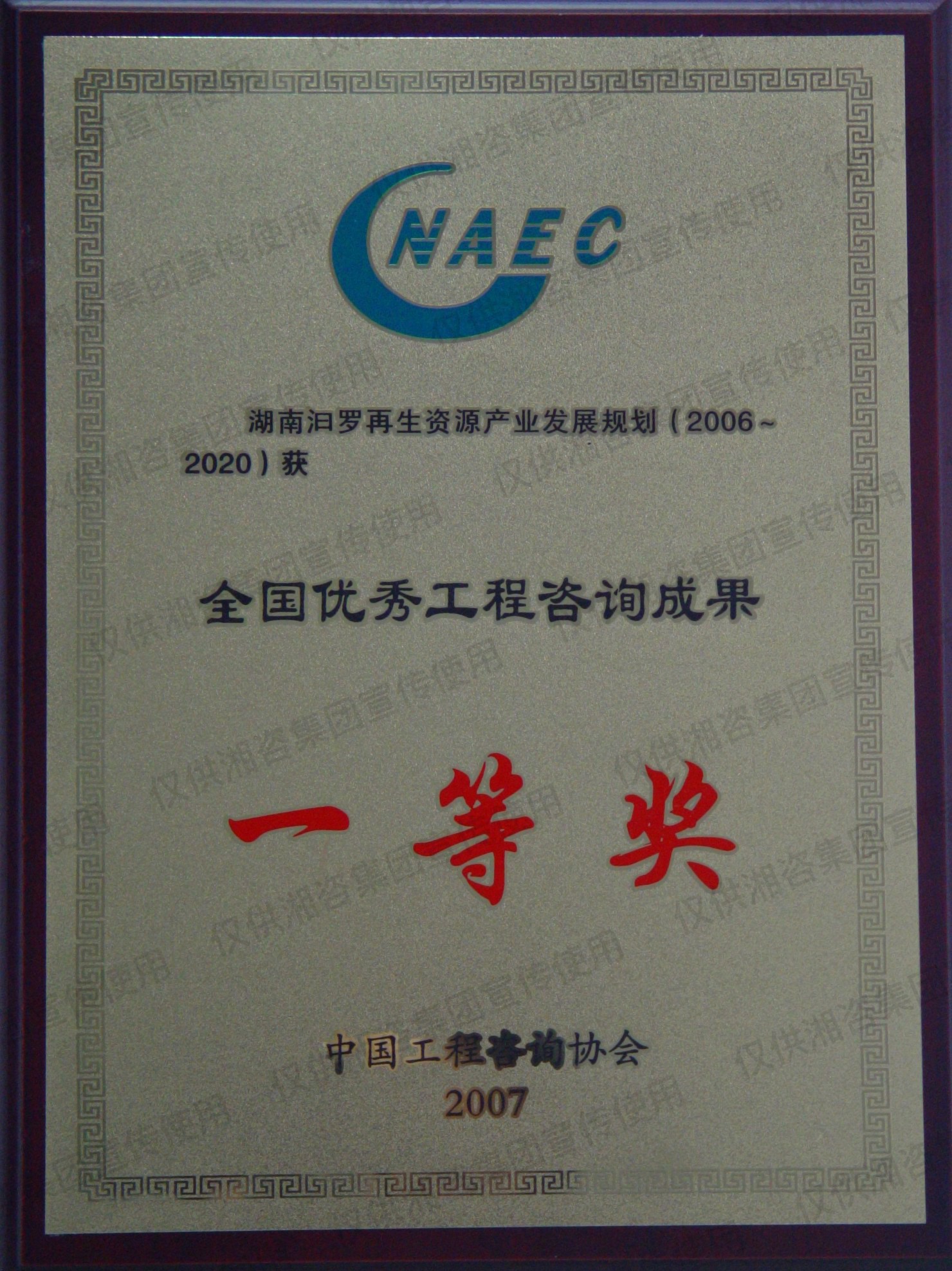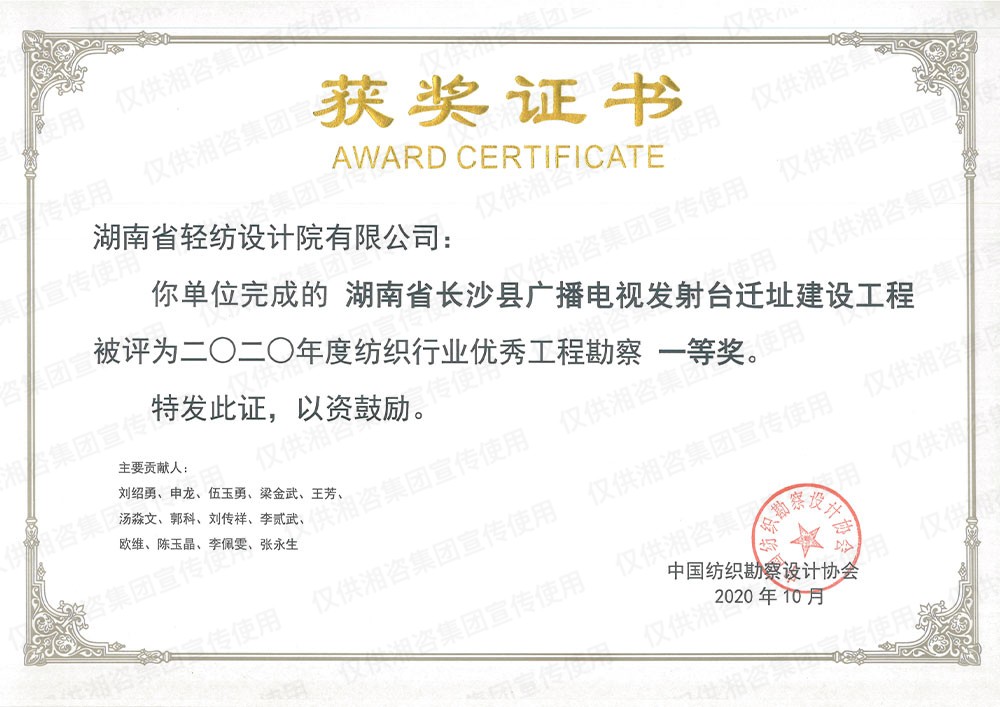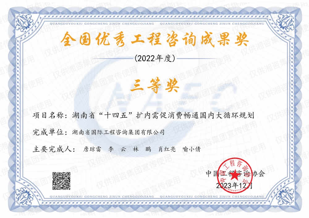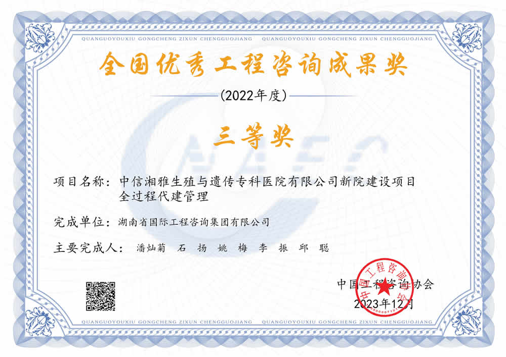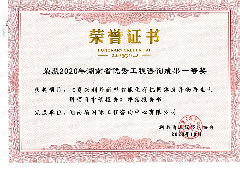 湖南省優(yōu)秀工程咨詢成果一等獎