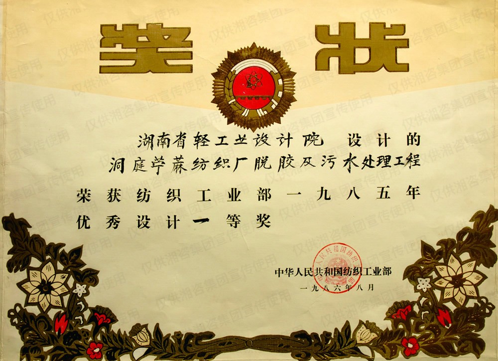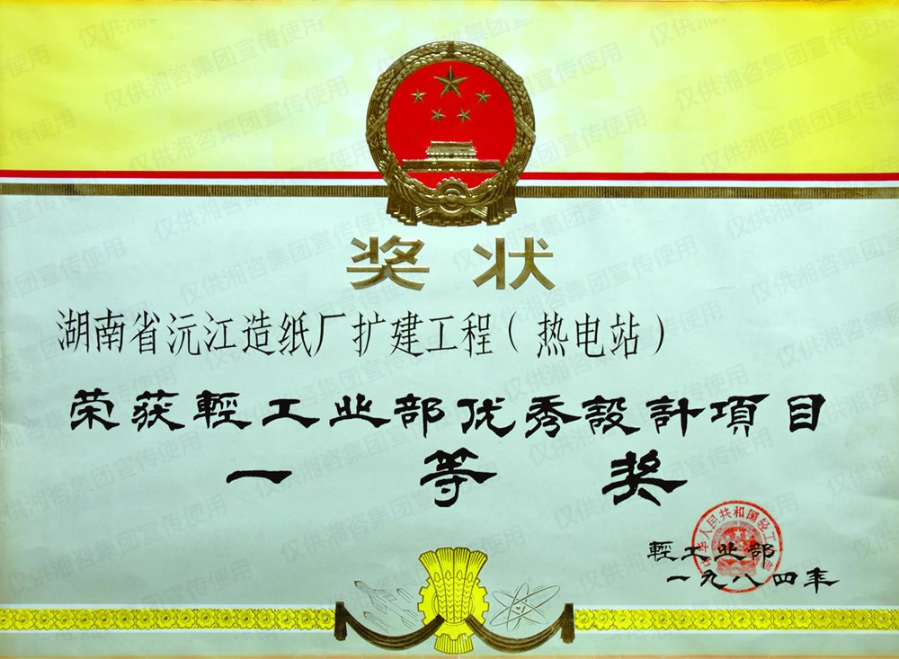 國家輕工部優(yōu)秀設(shè)計項目一等獎