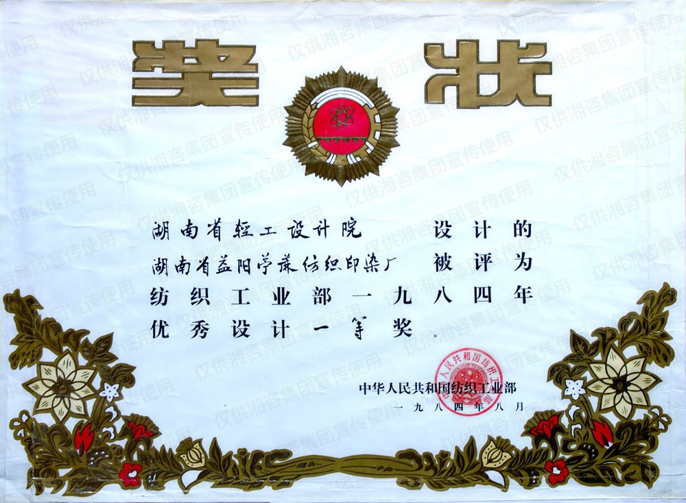 國家紡織工業(yè)部優(yōu)秀設(shè)計一等獎