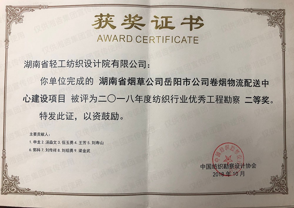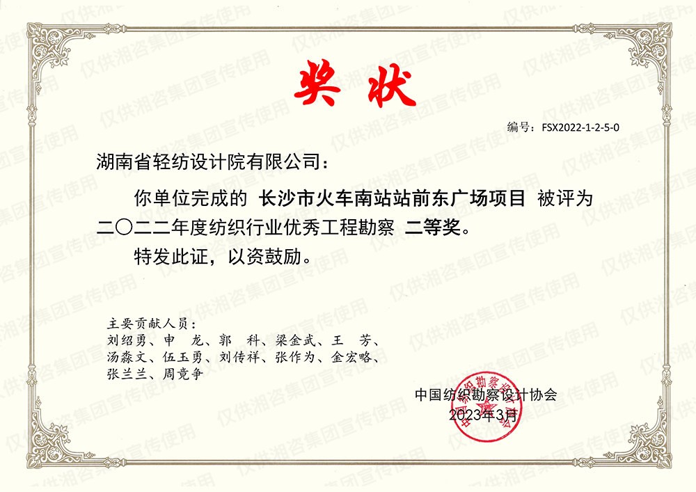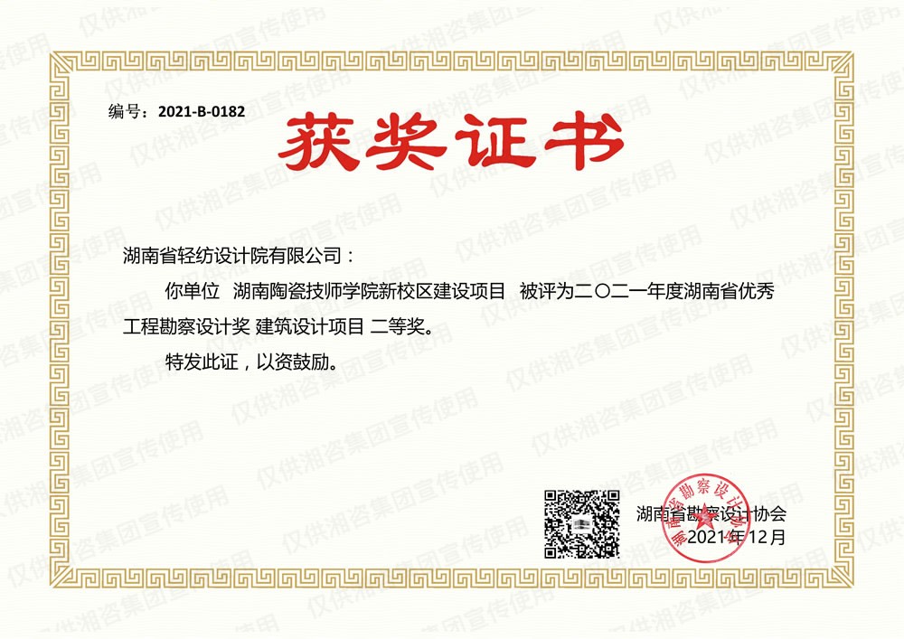 湖南省勘察設(shè)計協(xié)會優(yōu)秀工程勘察設(shè)計二等獎