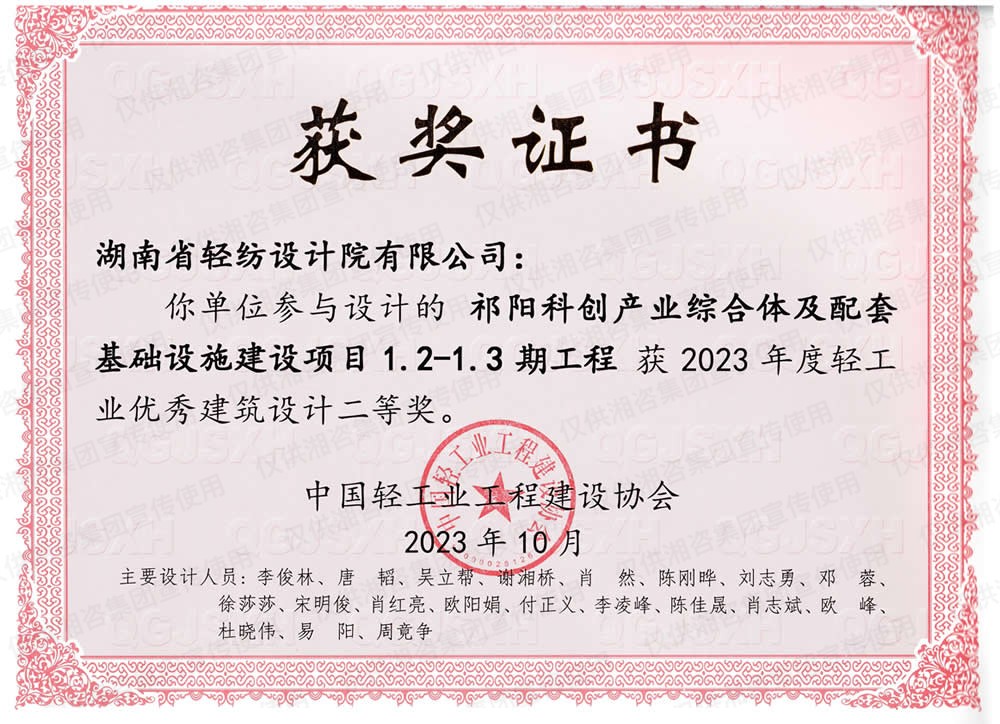 中國輕工業(yè)工程建設(shè)協(xié)會優(yōu)秀建筑設(shè)計二等獎