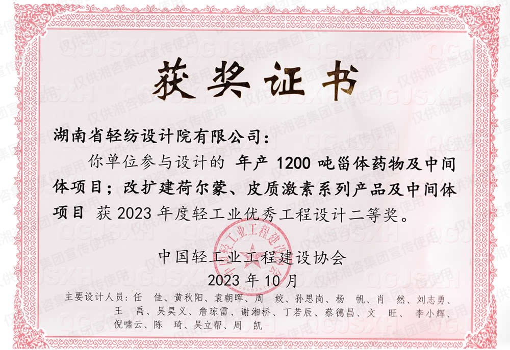 中國輕工業(yè)工程建設(shè)協(xié)會優(yōu)秀工程設(shè)計二等獎