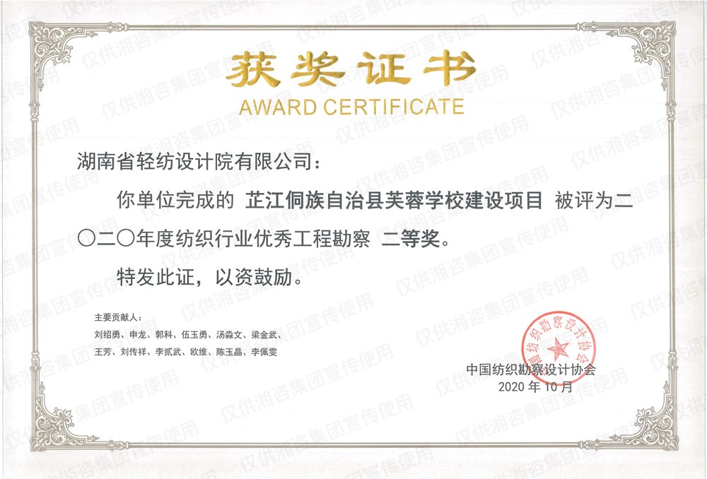 中國紡織勘察設(shè)計協(xié)會優(yōu)秀工程勘察二等獎