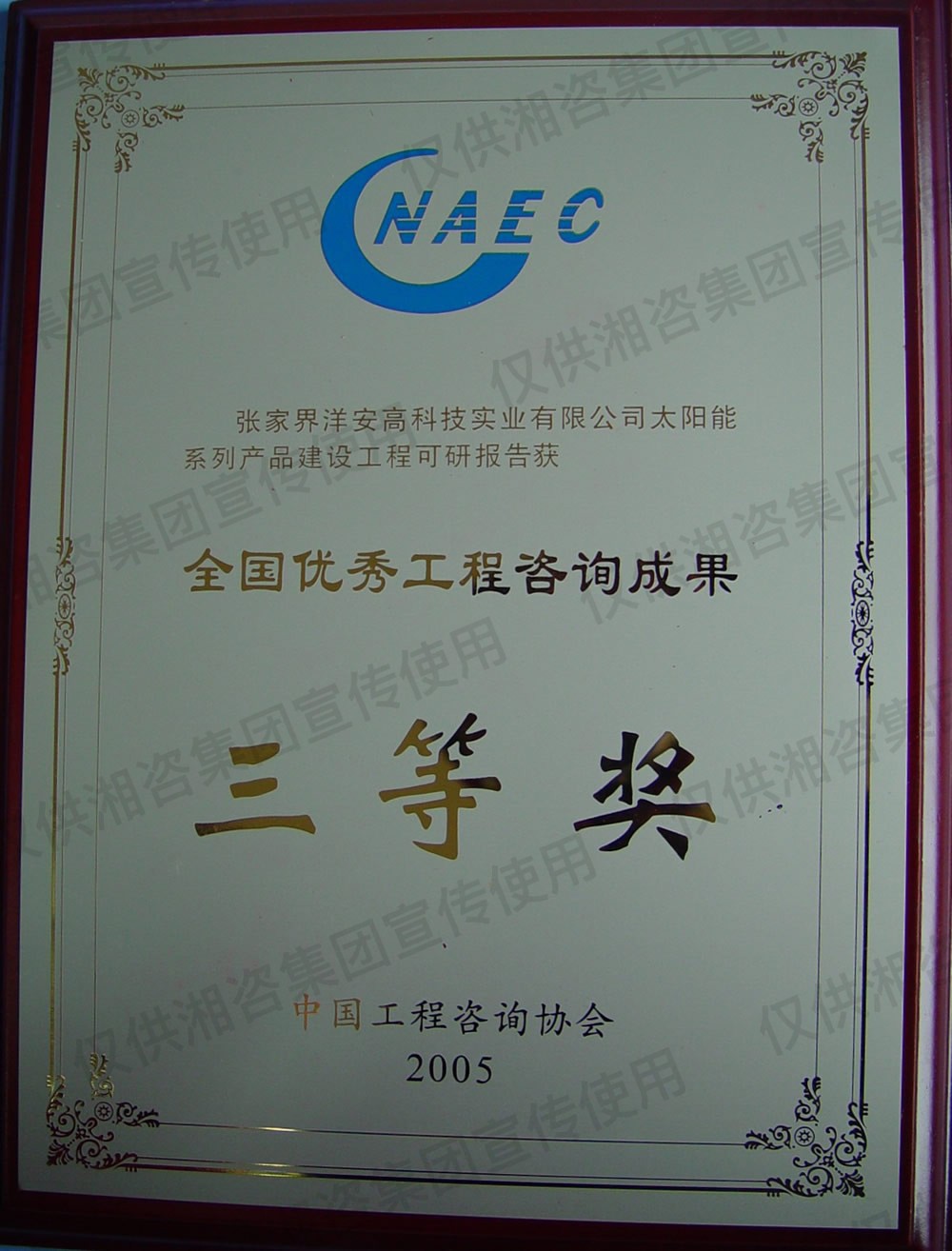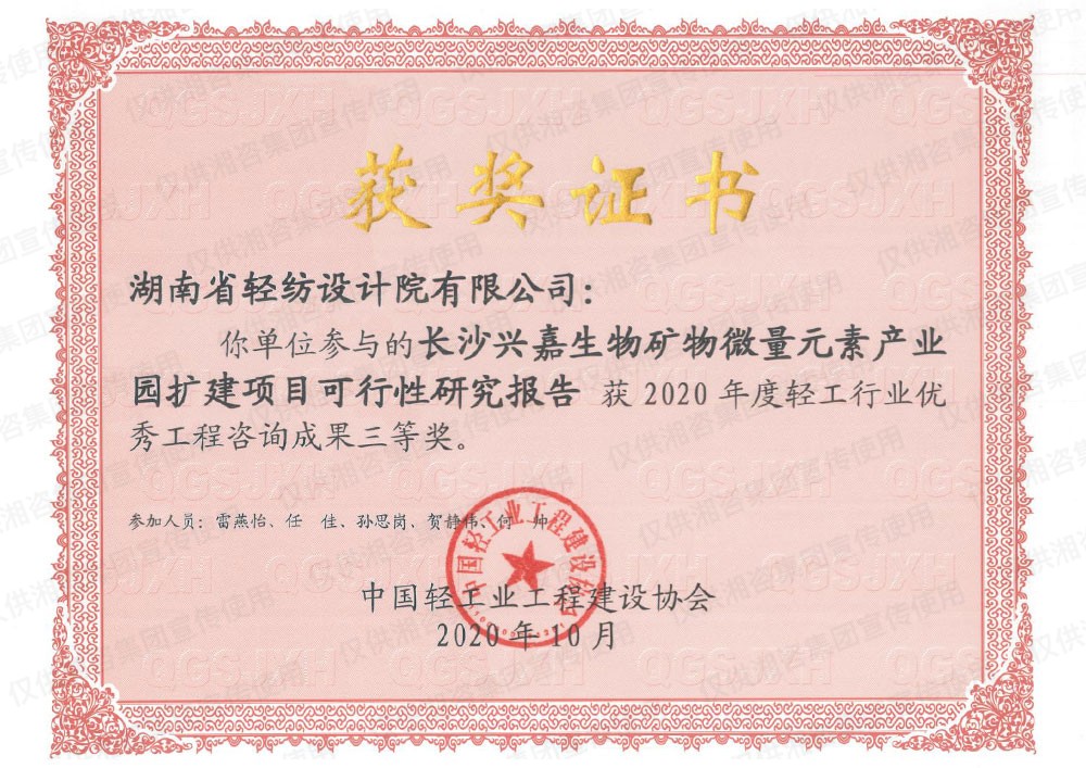 中國輕工業(yè)工程建設(shè)協(xié)會優(yōu)秀工程咨詢成果三等獎
