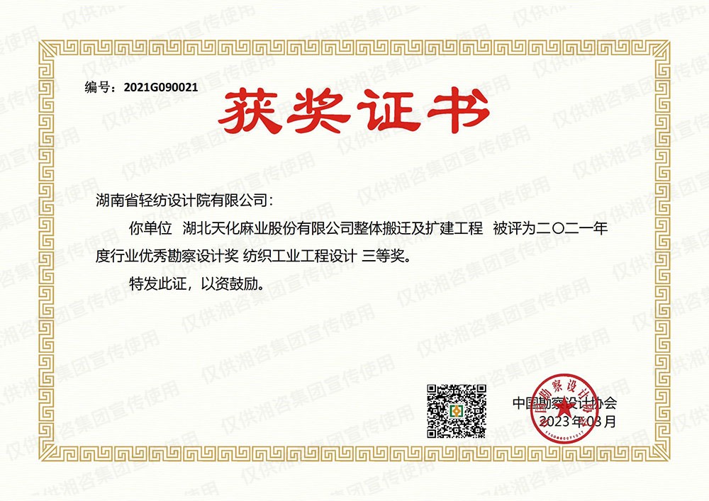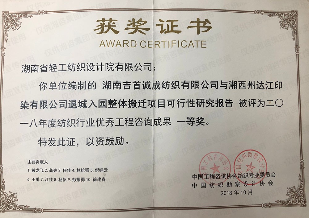 中國紡織勘察設(shè)計協(xié)會優(yōu)秀工程咨詢成果一等獎