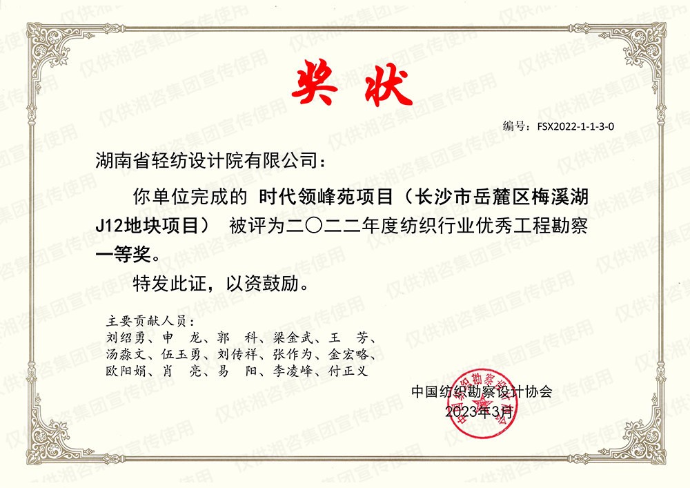 中國紡織勘察設(shè)計協(xié)會優(yōu)秀工程勘察一等獎
