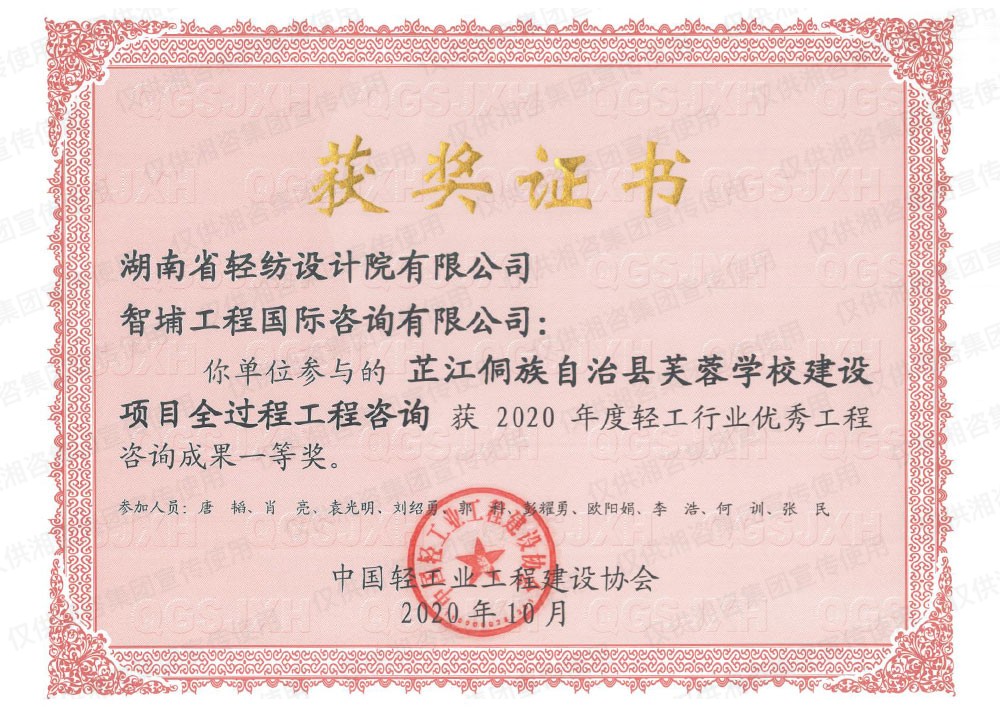 中國輕工業(yè)工程建設(shè)協(xié)會優(yōu)秀工程咨詢成果一等獎