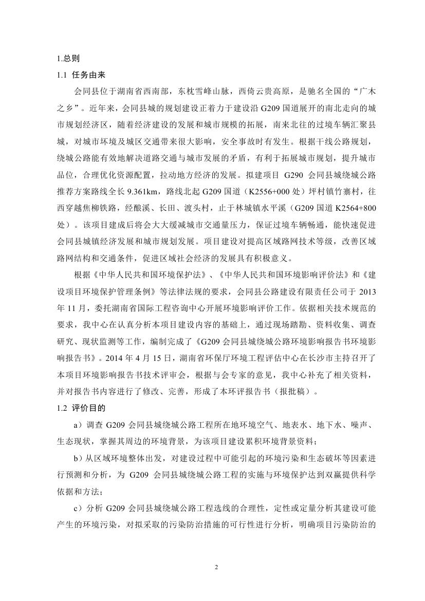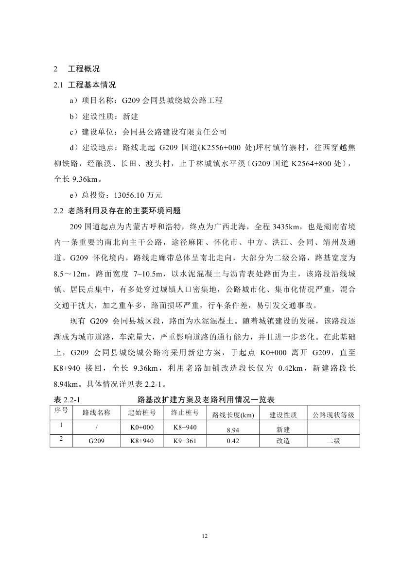 G209會同縣城繞城公路環(huán)境影響報告書