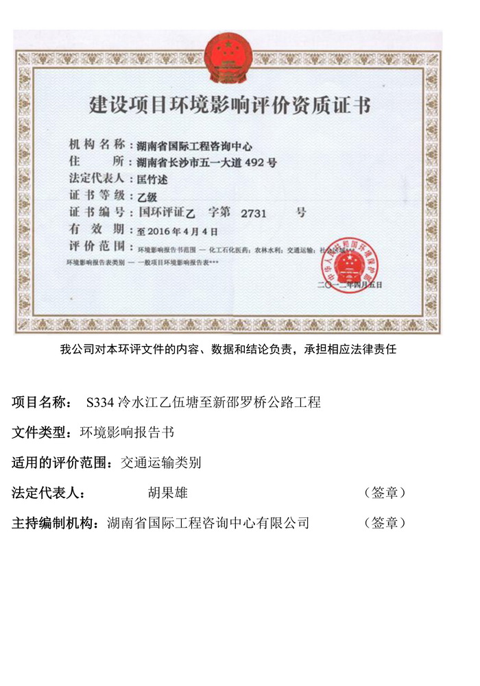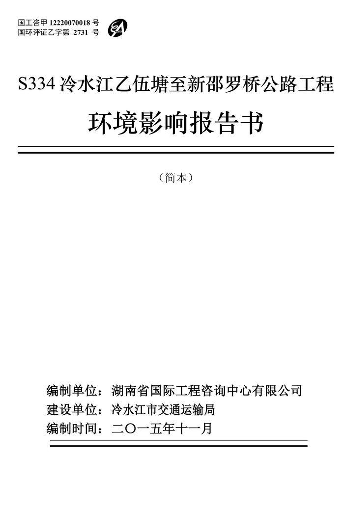 S334冷水江乙伍塘至新邵羅橋公路工程環(huán)評(píng)公示(簡本)