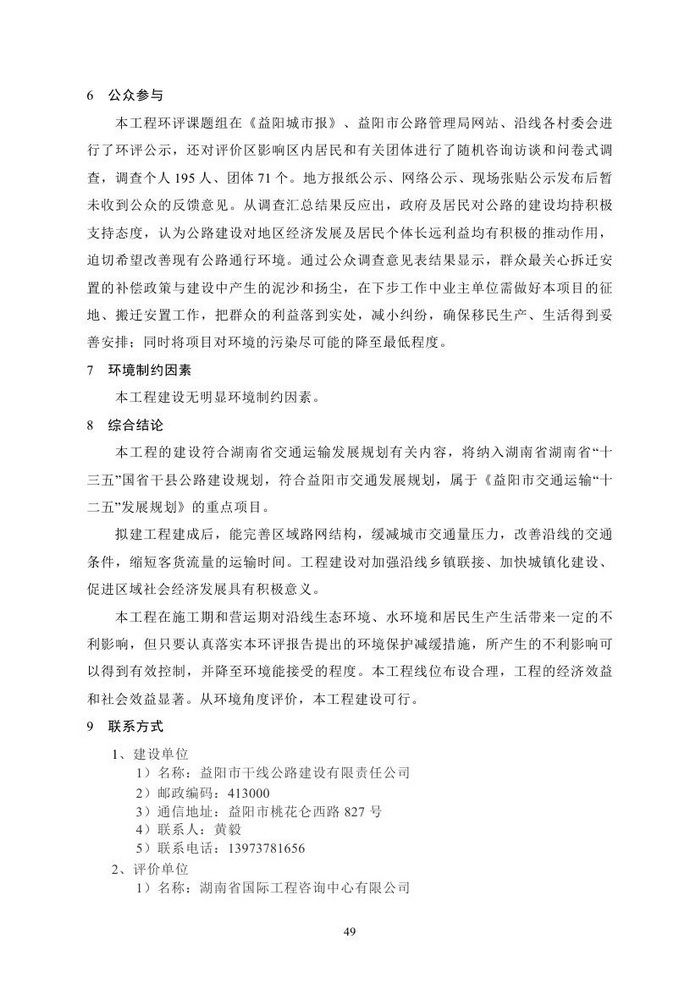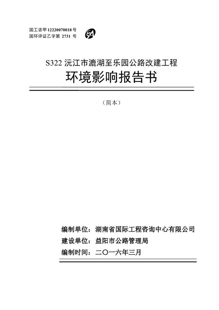 S322沅江市漉湖至樂園公路改建工程環(huán)境影響報告書(簡本)