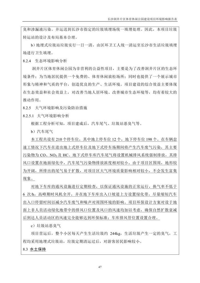 長(zhǎng)沙洞井片區(qū)體育休閑公園建設(shè)項(xiàng)目環(huán)境影響報(bào)告表(公示稿)