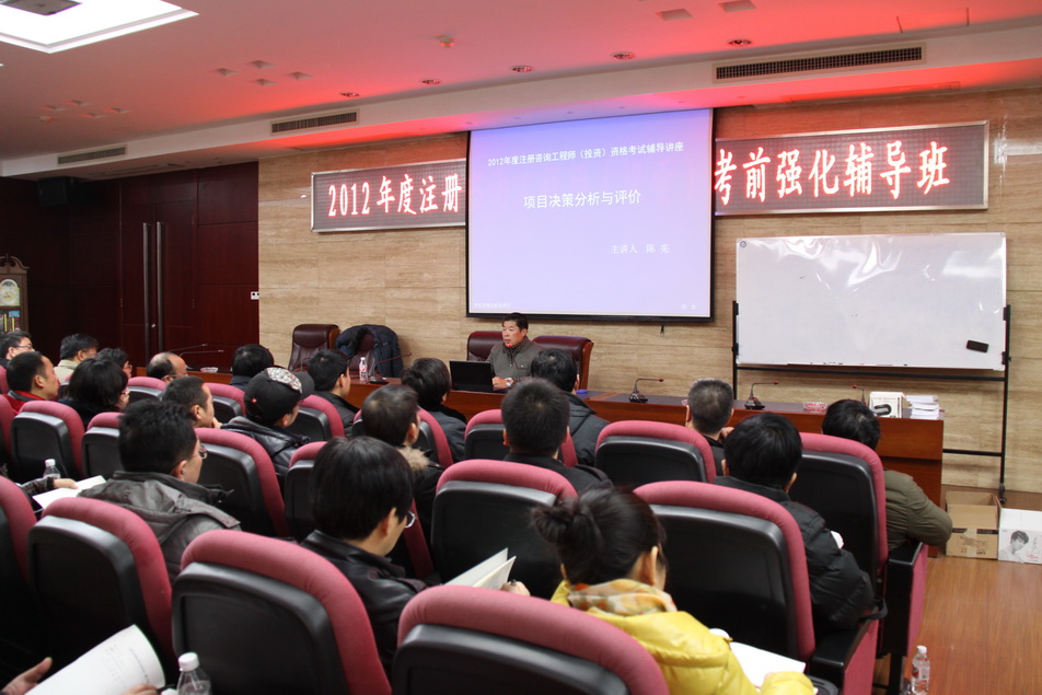 2012年2月17日至20日,湖南省工程咨詢(xún)協(xié)會(huì)在中心大會(huì)議室舉辦了為期四天的注冊(cè)咨詢(xún)工程師(投資)考前強(qiáng)化輔導(dǎo)班。中心今年28名報(bào)考注冊(cè)咨詢(xún)工程師(投資)的干部職工,以及紀(jì)檢監(jiān)察、辦公室、綜合處、機(jī)關(guān)黨委、工會(huì)、部分子公司負(fù)責(zé)人共49人參加了培訓(xùn)。