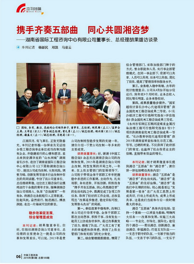 【轉(zhuǎn)載中國工程咨詢雜志】攜手齊奏五部曲 同心共圓湘咨夢(mèng)