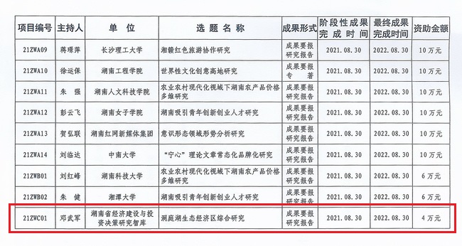 近日,湖南省哲學社會科學規(guī)劃基金辦公室公布了《關(guān)于下達2021年度湖南省社科基金智庫專項的通知》(湘社科辦〔2021〕7號),省咨詢公司生態(tài)規(guī)劃咨詢部憑借在生態(tài)文明建設(shè)、區(qū)域經(jīng)濟規(guī)劃領(lǐng)域的專業(yè)經(jīng)驗與過硬實力,以《洞庭湖生態(tài)經(jīng)濟區(qū)綜合研究》項目成功入選。