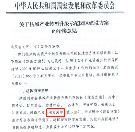 根據(jù)《國家發(fā)展改革委 科學(xué)技術(shù)部 工業(yè)和信息化部 自然資源部關(guān)于產(chǎn)業(yè)轉(zhuǎn)型升級(jí)示范區(qū)建設(shè)2020年度評(píng)估結(jié)果及下一步重點(diǎn)工作的通知》(發(fā)改振興〔2021〕866號(hào)),瀏陽經(jīng)開區(qū)成功入選國家級(jí)縣城產(chǎn)業(yè)轉(zhuǎn)型升級(jí)示范園區(qū)。《方案》被省發(fā)展改革委、省科技廳、省工信廳和省自然資源廳聯(lián)合印發(fā)。