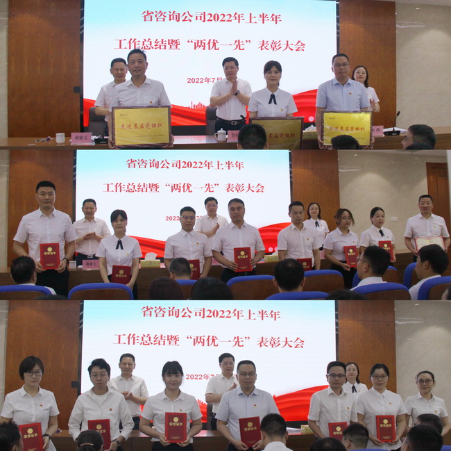 7月22日上午,省咨詢公司召開2022年上半年工作總結(jié)暨“兩優(yōu)一先”表彰大會(huì),公司領(lǐng)導(dǎo)班子成員、公司本部全體干部職工和分子公司代表參加會(huì)議。會(huì)議由公司黨委書記、董事長(zhǎng)詹瓊雷主持。