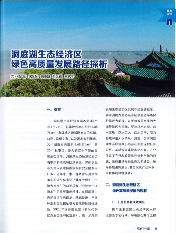 近日,由省咨詢公司生態(tài)規(guī)劃咨詢部撰寫的《洞庭湖生態(tài)經(jīng)濟(jì)區(qū)綠色高質(zhì)量發(fā)展路徑探析》一文被《中國工程咨詢》(中國工程咨詢協(xié)會主辦)2023年第3期刊用。