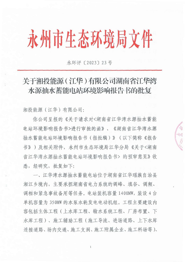 近日,我司環(huán)境保護(hù)咨詢事業(yè)部負(fù)責(zé)撰寫的《湖南省江華灣水源抽水蓄能電站環(huán)境影響報(bào)告書(shū)》,順利通過(guò)了永州市生態(tài)環(huán)境局的評(píng)審并取得批復(fù)(永環(huán)評(píng)〔2023〕23號(hào))。