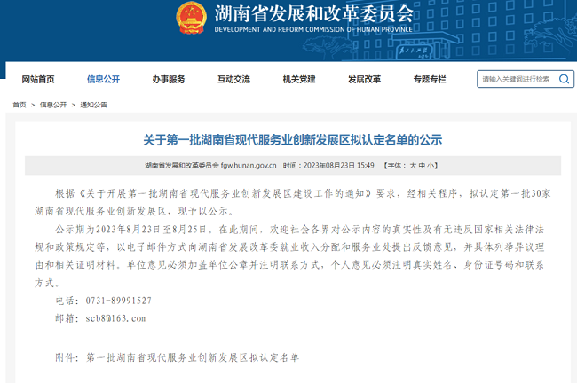 第一批湖南省現(xiàn)代服務(wù)業(yè)創(chuàng)新發(fā)展區(qū)擬認(rèn)定名單