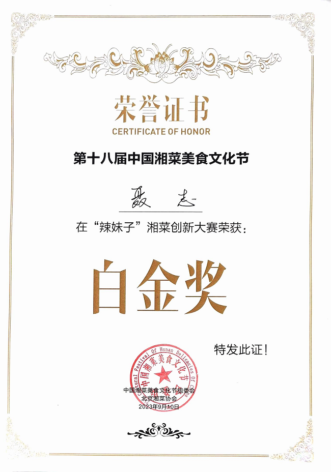 湘菜出湘,京城飄香。9月10日,由湖南省人民政府駐北京辦事處、湖南日報社、湖南省商務廳和長沙市人民政府聯合主辦的第十八屆中國湘菜美食文化節(jié)在北京盛大舉行。此次中國湘菜美食文化節(jié)共有60余位選手參賽,湘咨集團下屬北京澤相苑大酒店以主打菜品“攜手共進”參賽,榮獲此次大賽的最高獎項--白金獎。