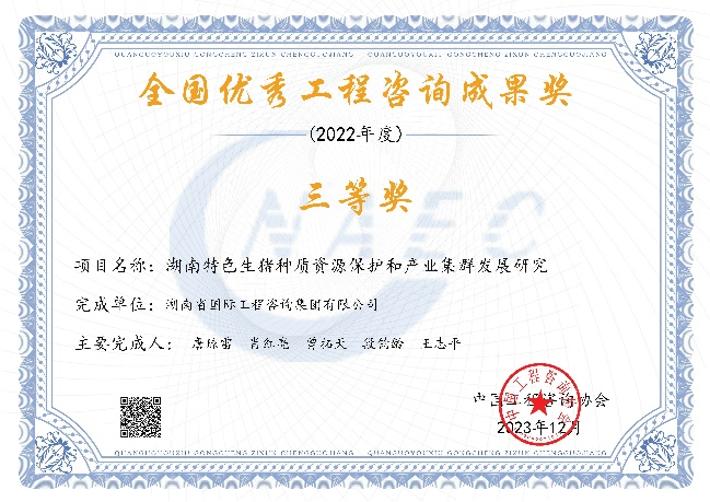 全國(guó)優(yōu)秀工程咨詢成果獎(jiǎng)是國(guó)家工程咨詢行業(yè)的最高獎(jiǎng)項(xiàng),每?jī)赡暝u(píng)選一次。截至今年,湘咨集團(tuán)共獲得全國(guó)優(yōu)秀工程咨詢成果一等獎(jiǎng)2項(xiàng)、二等獎(jiǎng)9項(xiàng)、三等獎(jiǎng)19項(xiàng)、優(yōu)秀獎(jiǎng)2項(xiàng)。這些獲獎(jiǎng)成果既是湘咨集團(tuán)在工程咨詢領(lǐng)域?qū)I(yè)能力和綜合實(shí)力的充分展示,也是集團(tuán)深耕主責(zé)主業(yè)聚焦創(chuàng)新發(fā)展的體現(xiàn)。