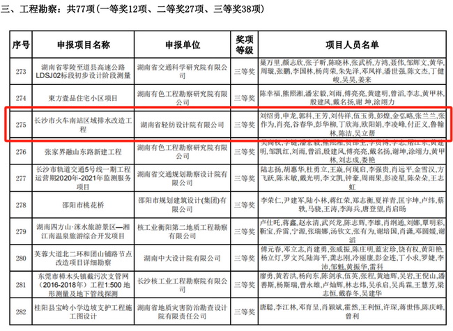 近期,省勘協(xié)公布了2023年度湖南省優(yōu)秀工程勘察設計獎評選結果,湘咨集團所屬省輕紡院共斬獲5項工程勘察設計獎。其中,寧鄉(xiāng)經(jīng)開區(qū)美妝谷一期項目、祁陽科創(chuàng)產(chǎn)業(yè)綜合體及配套基礎設施建設項目1.2-1.3期工程榮獲建筑設計獎;湖南中煙工業(yè)有限責任公司郴州卷煙廠易地技術改造項目榮獲工業(yè)設計獎;寧鄉(xiāng)經(jīng)開區(qū)美妝谷一期項目、長沙市火車南站區(qū)域排水改造工程榮獲工程勘察獎。