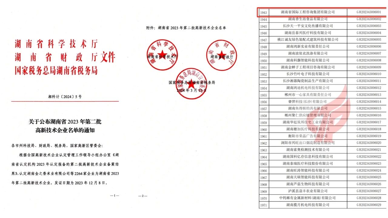 近日,湖南省科學(xué)技術(shù)廳、湖南省財(cái)政廳、國家稅務(wù)總局湖南省稅務(wù)局公布了湖南省2023年第二批高新技術(shù)企業(yè)名單,湘咨集團(tuán)再次榮獲“高新技術(shù)企業(yè)”稱號。