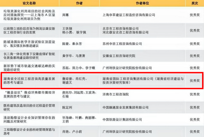 近日,《中國(guó)工程咨詢(xún)》首屆(青海杯)優(yōu)秀論文評(píng)選揭曉,湘咨集團(tuán)《洞庭湖生態(tài)經(jīng)濟(jì)區(qū)綠色高質(zhì)量發(fā)展路徑深析》《湖南省全過(guò)程工程咨詢(xún)高質(zhì)量發(fā)展的思考與建議》2篇研究成果分別獲得三等獎(jiǎng)和優(yōu)秀獎(jiǎng)。