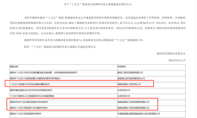 近日,根據(jù)衡陽市和湘西州發(fā)展改革委“十五五”規(guī)劃前期研究重大課題遴選結(jié)果公示,湘咨集團(tuán)成功中標(biāo)《衡陽市優(yōu)化投資結(jié)構(gòu)和提升投資效益研究》《衡陽縣域經(jīng)濟(jì)高質(zhì)量發(fā)展研究》《湘西州生態(tài)產(chǎn)品價(jià)值實(shí)現(xiàn)路徑與機(jī)制研究》《湘西州“十五五"新能源產(chǎn)業(yè)專題研究報(bào)告》《“十五五”全面提升全州項(xiàng)目?jī)?chǔ)備質(zhì)量的研究》等多個(gè)課題。