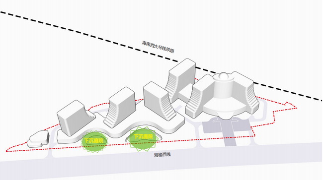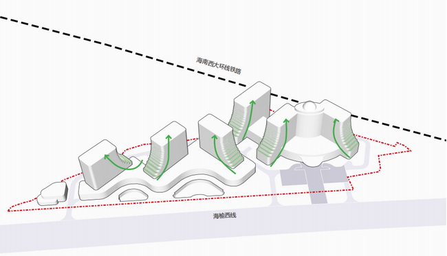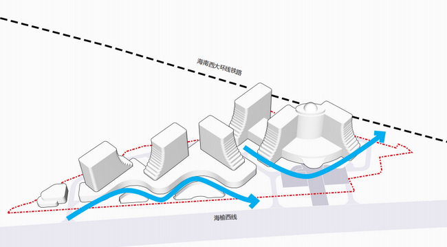 該項目的建筑形態(tài)及規(guī)劃布局借鑒了帆船設(shè)計意向,酒店建筑則借鑒貝殼銜珠意向。在擁有美好寓意的同時,充分展現(xiàn)了三亞作為海濱城市的文化特色。
