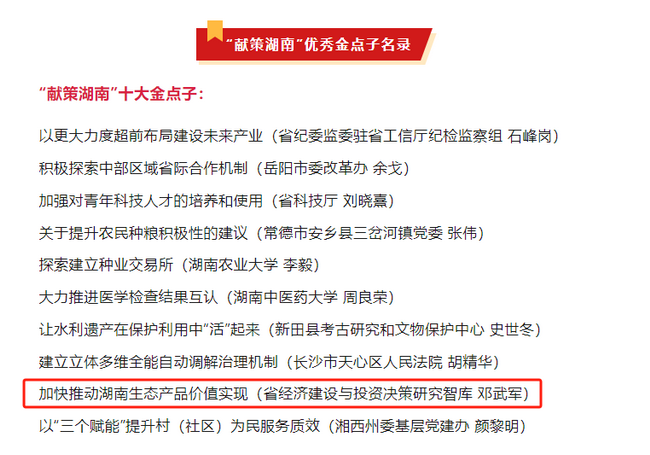 “獻(xiàn)策湖南”金點(diǎn)子征集活動是省委安排部署、省委社會工作部牽頭負(fù)責(zé)的一項(xiàng)人民建議征集工作。“湘咨集團(tuán)”作為省級“智囊團(tuán)”積極參與、踴躍獻(xiàn)策,撰寫的《加快推動湖南生······