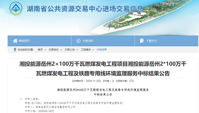 近日,湘咨集團(tuán)環(huán)境保護(hù)咨詢事業(yè)部成功中標(biāo)湘投能源岳州2100萬(wàn)千瓦燃煤發(fā)電工程及鐵路專用線環(huán)境監(jiān)理,為集團(tuán)進(jìn)一步拓寬火電工程環(huán)保業(yè)務(wù)奠定了堅(jiān)實(shí)基礎(chǔ)。 岳州電廠是······